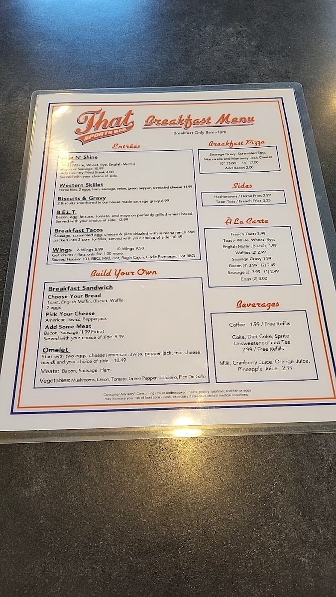 Amid the energetic atmosphere, the wing sauces are a standout, paired with commendable service that keeps patrons coming back. Whether you're planning a brunch with friends, a cozy date, or a family outing, THAT Sports Bar delivers an inviting experience for everyone. Great food, engaging staff, and a welcoming vibe make it a must-visit for all food lovers!