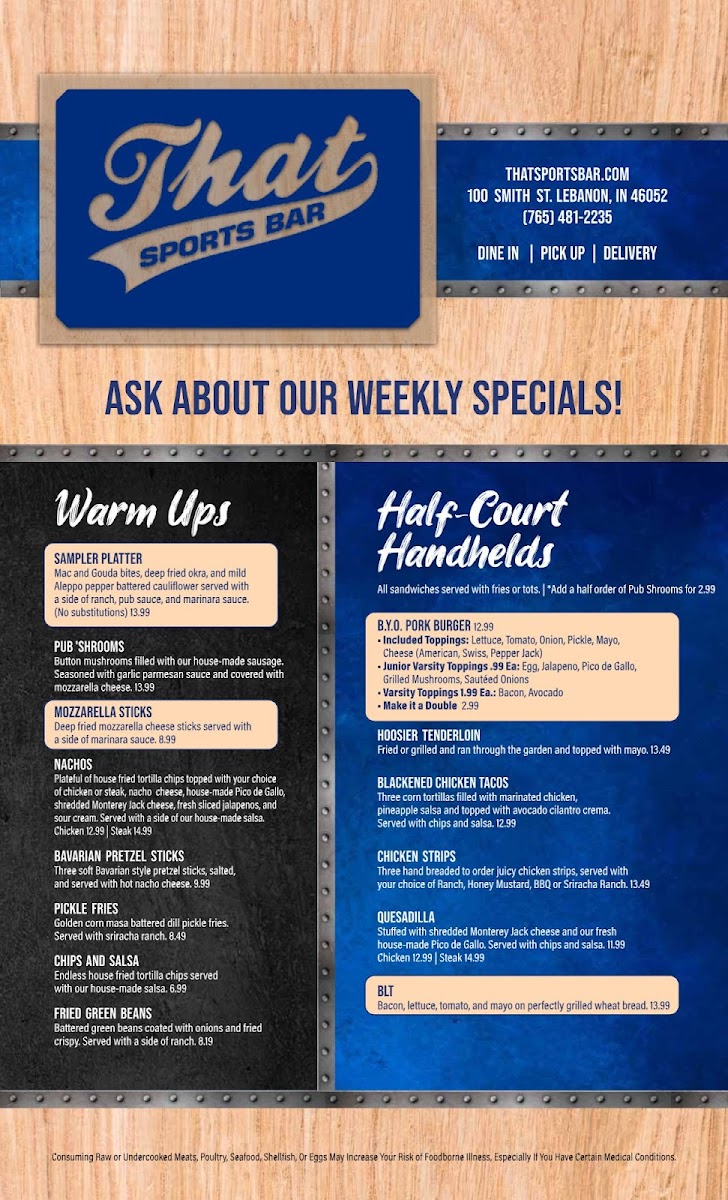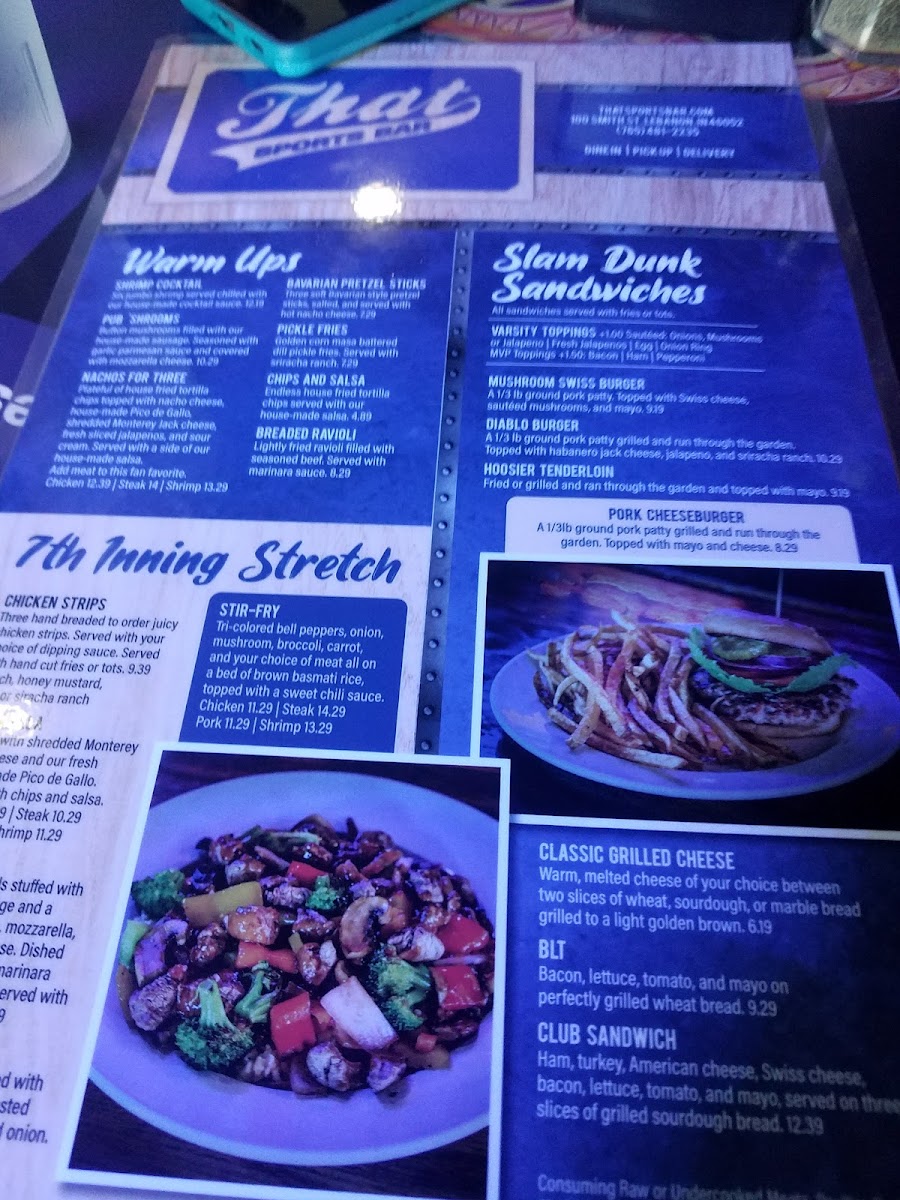Welcome to THAT Sports Bar, located at 100 Smith St, Lebanon, IN, where flavor meets fun! This lively venue is not just your ordinary sports bar; it promises an unforgettable culinary experience.